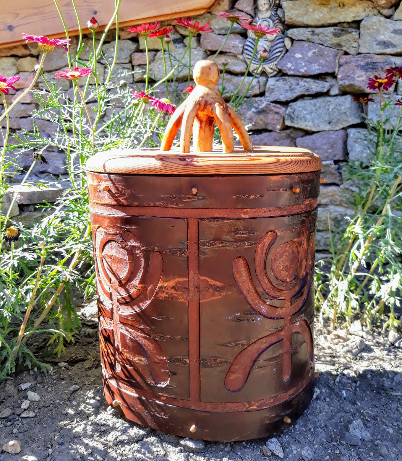- Műfaj: fafaragó, kéregedény-készítő